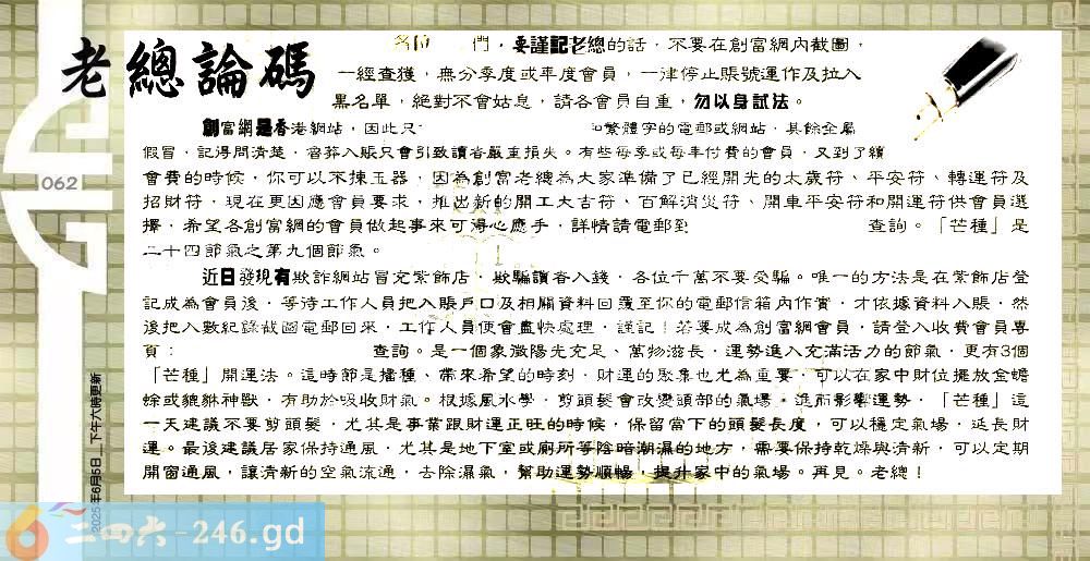 062期:六合皇金句/老总论码/萧公子/林大师/五行夺码/老总信箱截图