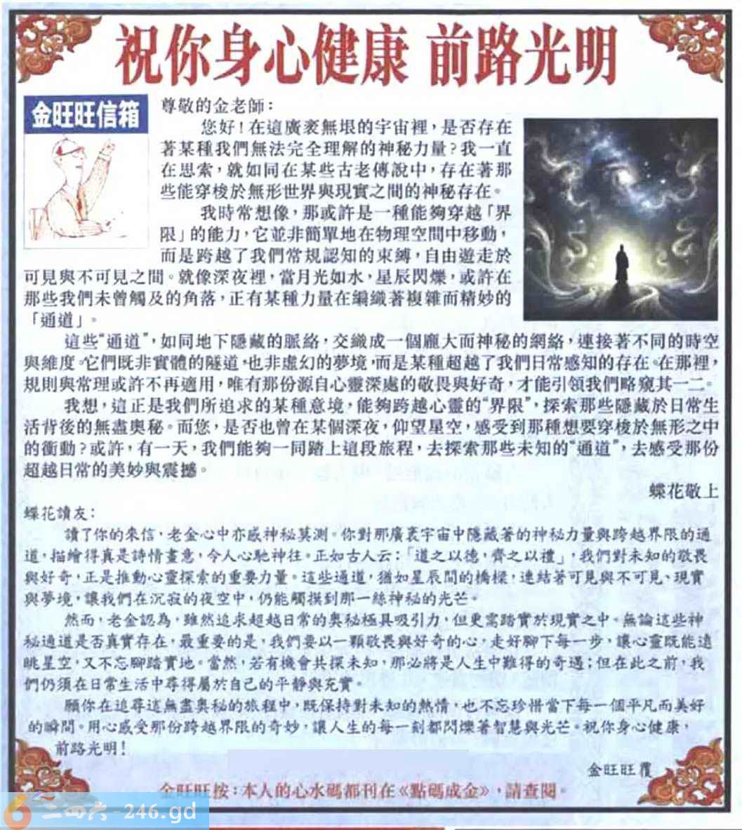 2025067期067期:金旺旺信箱彩民推荐→→《祝你身心健康 前路光明》