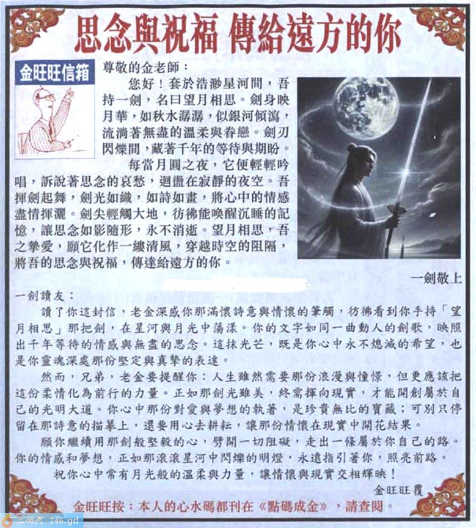 2025077期077期:金旺旺信箱彩民推荐→→《思念與祝福 傳給遠方的你》