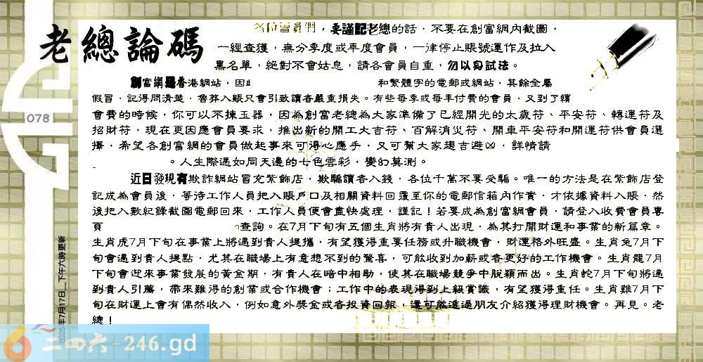 078期:六合皇金句/老总论码/萧公子/林大师/五行夺码/老总信箱截图