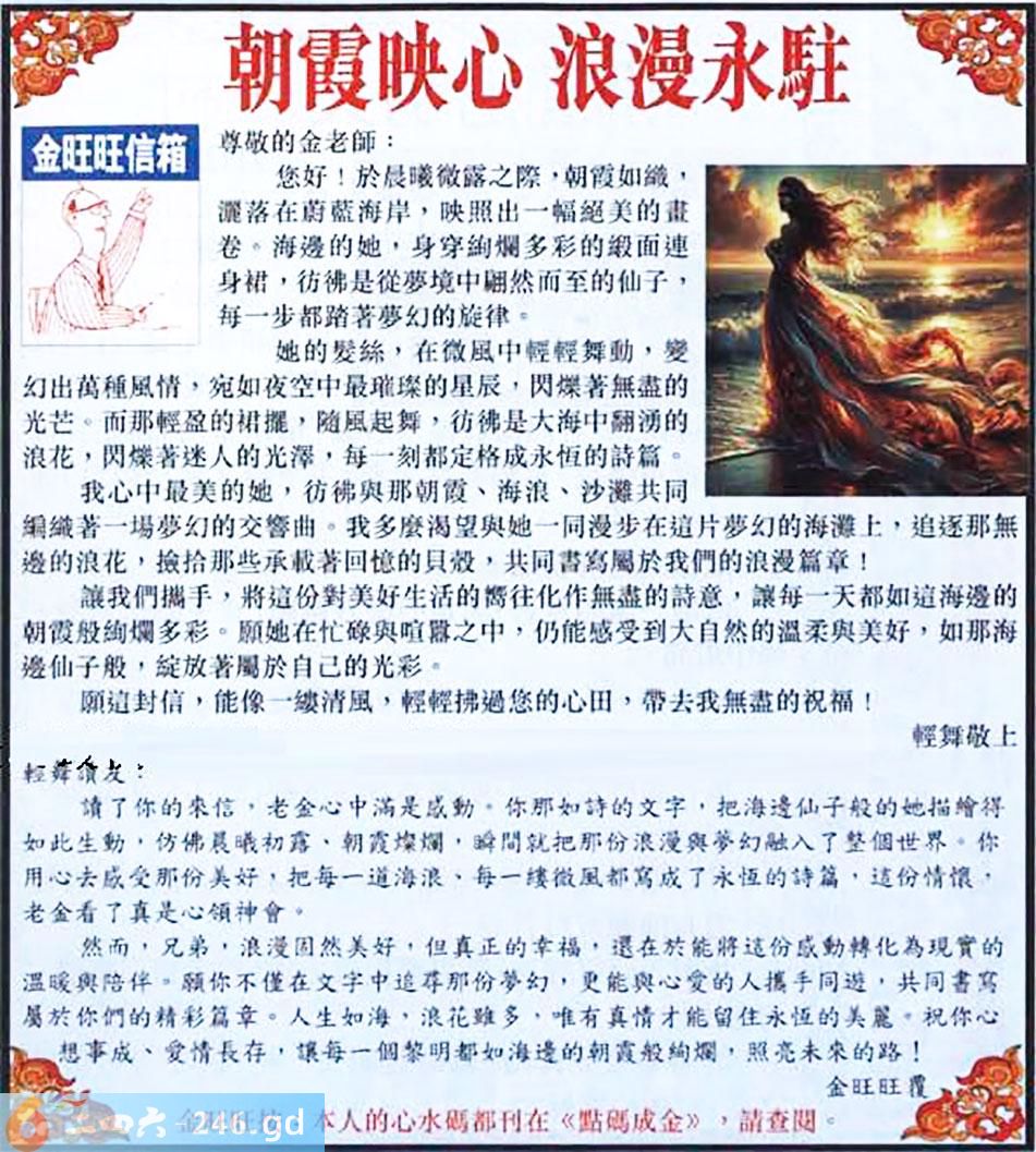 079期:金旺旺信箱彩民推荐→→《朝霞映心 浪漫永駐》