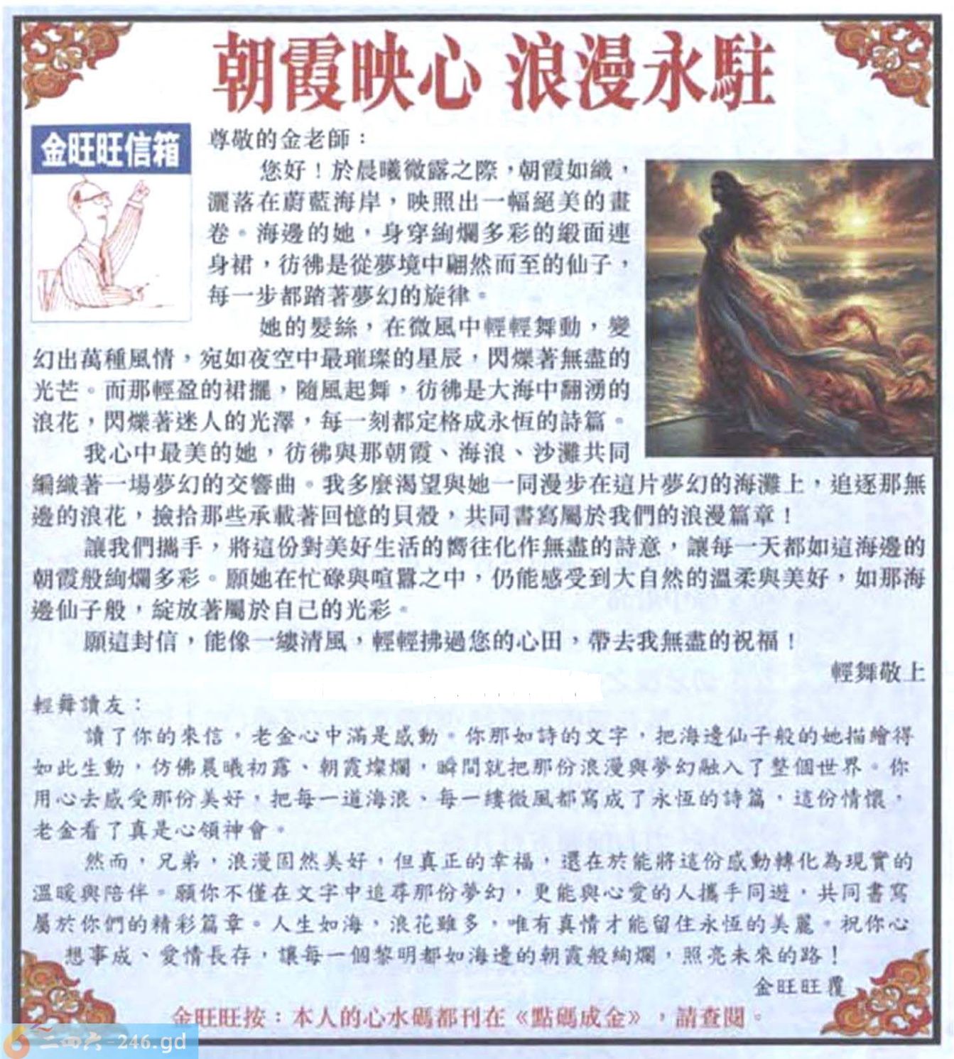 2025079期079期:金旺旺信箱彩民推荐→→《朝霞映心 浪漫永駐》