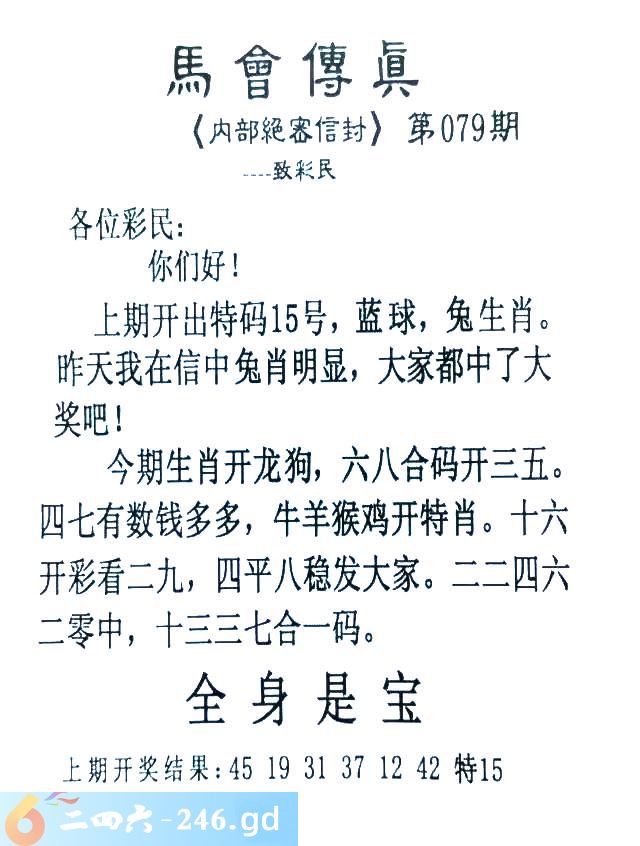 079期:首发推荐:≮馬會傳眞≯→(香港正版)