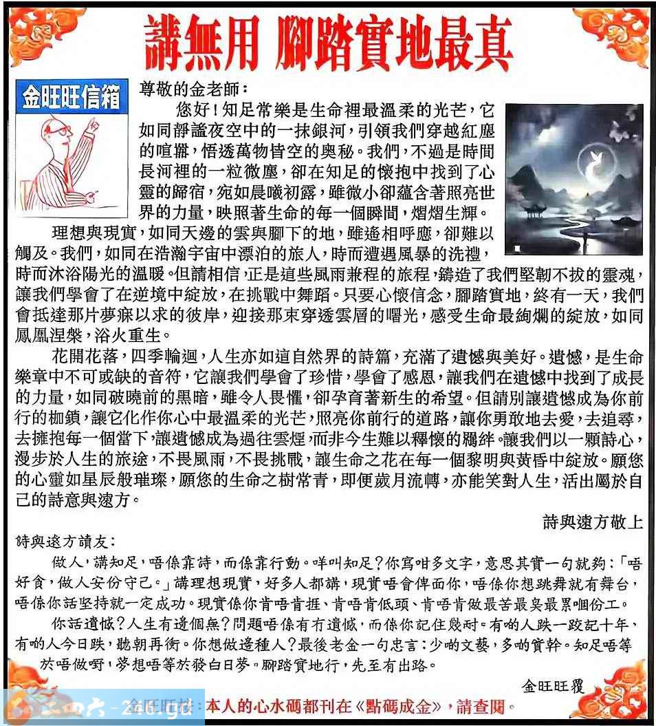 2025107期107期:金旺旺信箱彩民推荐→→《讲无用 脚踏实地最真》