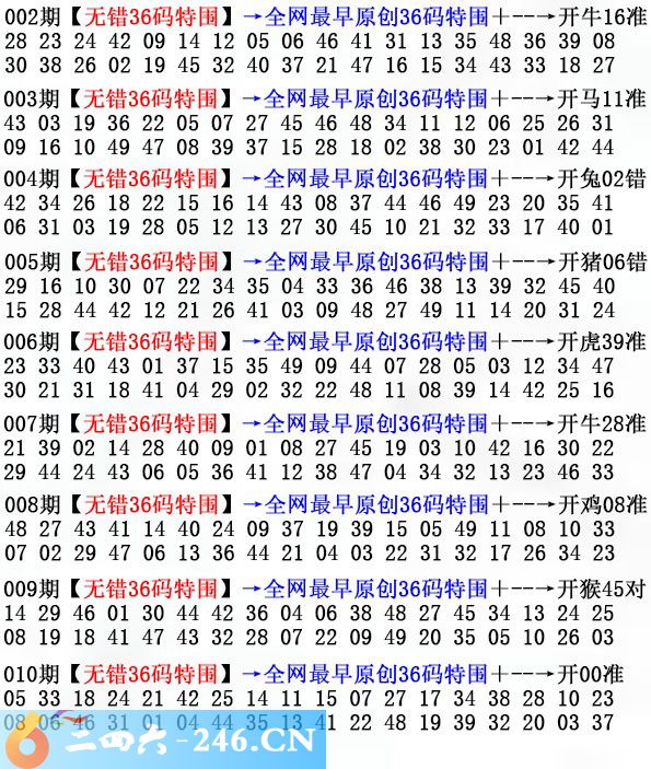 010期:无错36码