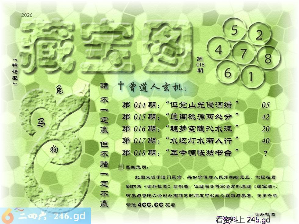 018期藏寶圖 新:至今惆怅独书台 老:便与常时两样看 禁:羊 禁:3尾 玄機字:《切》财爷送:“金塘水乱流”
