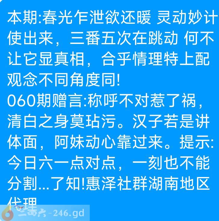 本期:春光乍泄欲还暖灵动妙计使出来,三番五次在跳动何不让它显真相,合乎情理特上配观念不同角度同! 060期赠言:称呼不对惹了祸,清白之身莫玷污。汉子若是讲体面,阿妹动心靠过来。提示:今日六一点对点,一刻也不能分割...了知!惠泽社群湖南地区代理