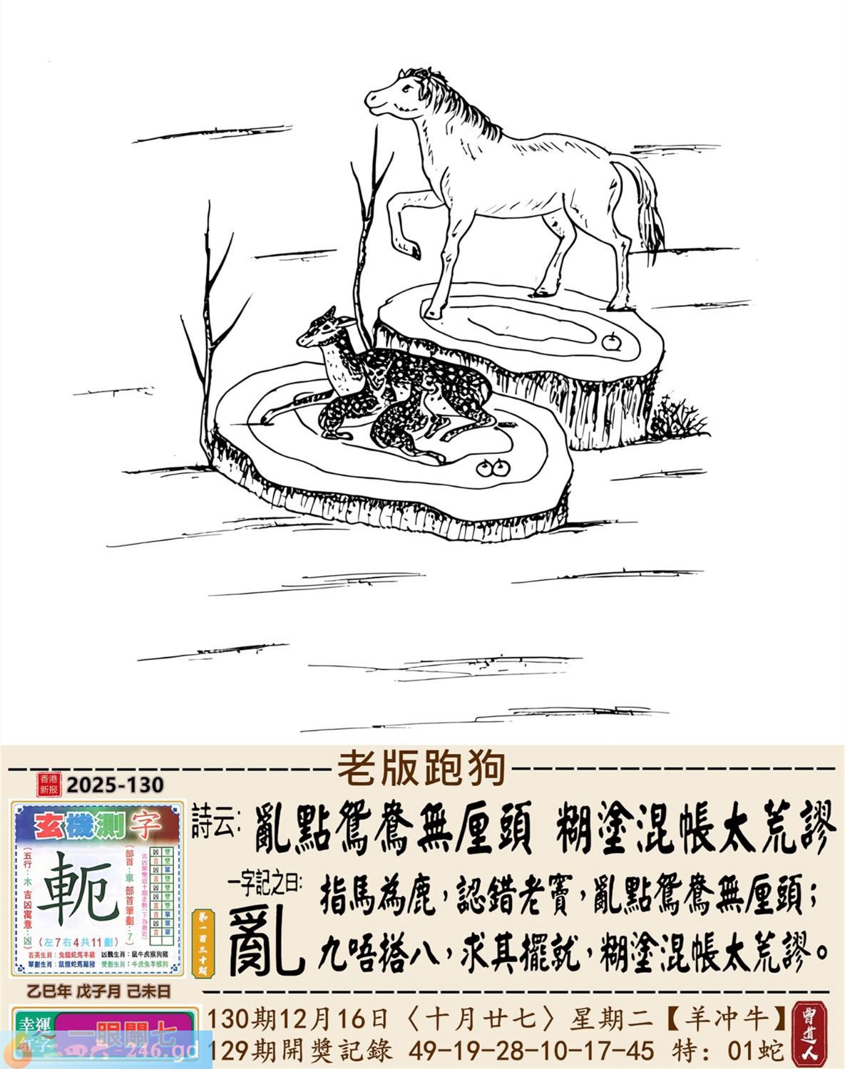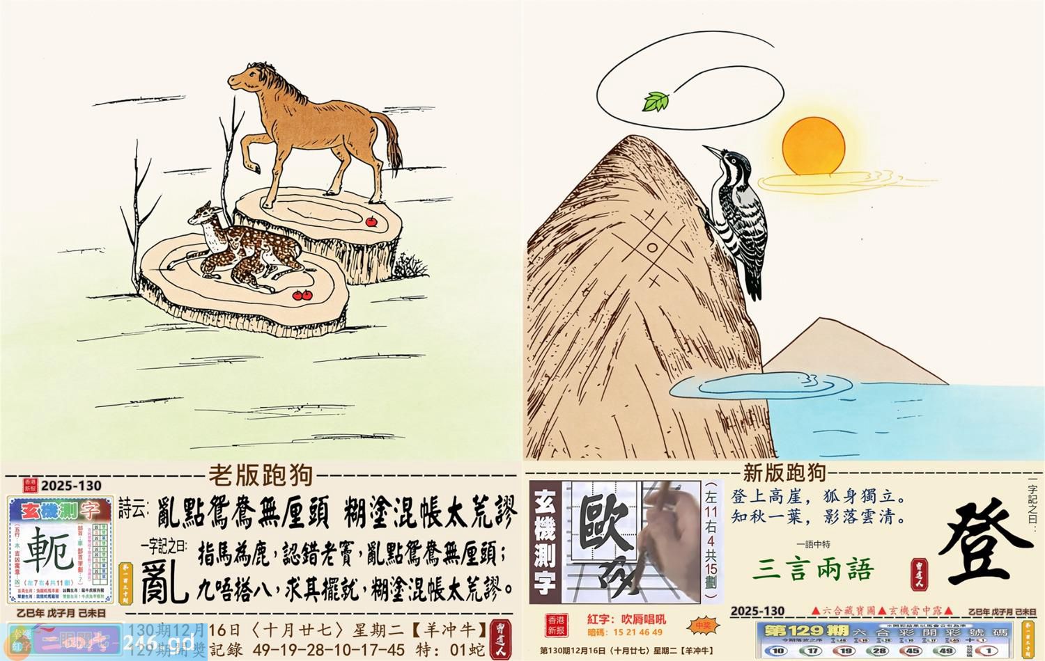 2025年12月16日130期牛(癸丑)(天上火) 130期:老版跑狗玄機一字記之曰:【亂】 詩云:亂點鴛鴦無厘頭糊塗混帳太荒謬 日指馬鹿,認錯老竇,亂點鴛鴦無厘頭; 九唔搭八,求其擺就,糊塗混帳太荒謬。 玄機測字:《軛》 密圖詩:一把石頭抛水中 《記》:人生一雙八字眼 特碼大小單雙句:姑娘十八一朵花 今期必中:曹操 130期:特碼歇后語 脑门上开口-----对天说话 130期正版四字梅花诗:胸有成竹。 130期火车头:烧伤龙。诗:龙死马伤,看好三九梦中游。 130期香港第一手欲钱料:一? 130期曾道人说:“牛?” 130期另版四字梅花诗:有苦难言。 130期香港第一手欲钱料:欲钱看西部大开发。 130期曾道人说:“男人三十好动被象征为什么”? 130期:二字經:小氣 130期:中药是特码 130期:智力金壤:四面楚歌 130期:信箱紅字:【吹唇唱吼】 130期:【暗碼:15-21-46-49】 130期:一語中特:【三言兩語】 發財玄機圖:活力敏捷貼心好動圖中明狗藍綠 130期:藏寳圖 新:最是城中闲静处 老:料峭轻寒结晚阴 禁:狗禁:0尾玄机字《贾》 2025年130期【生活幽默】版 〖觀念一致〗 老處女與花花公子聊天,偏偏觀念始終無法溝通。 花花公子耐心地問:"好,我再問你一個問題,當你進到一間有兩張床的房間裏,一張床上躺了一個女人,一張床上躺了一個男人,你會躺哪張床?"老處女不加思索答:"當然是躺女人的那張床!"花花公子得意地説:"你看,我就説我們的觀念總會一致的嘛!"