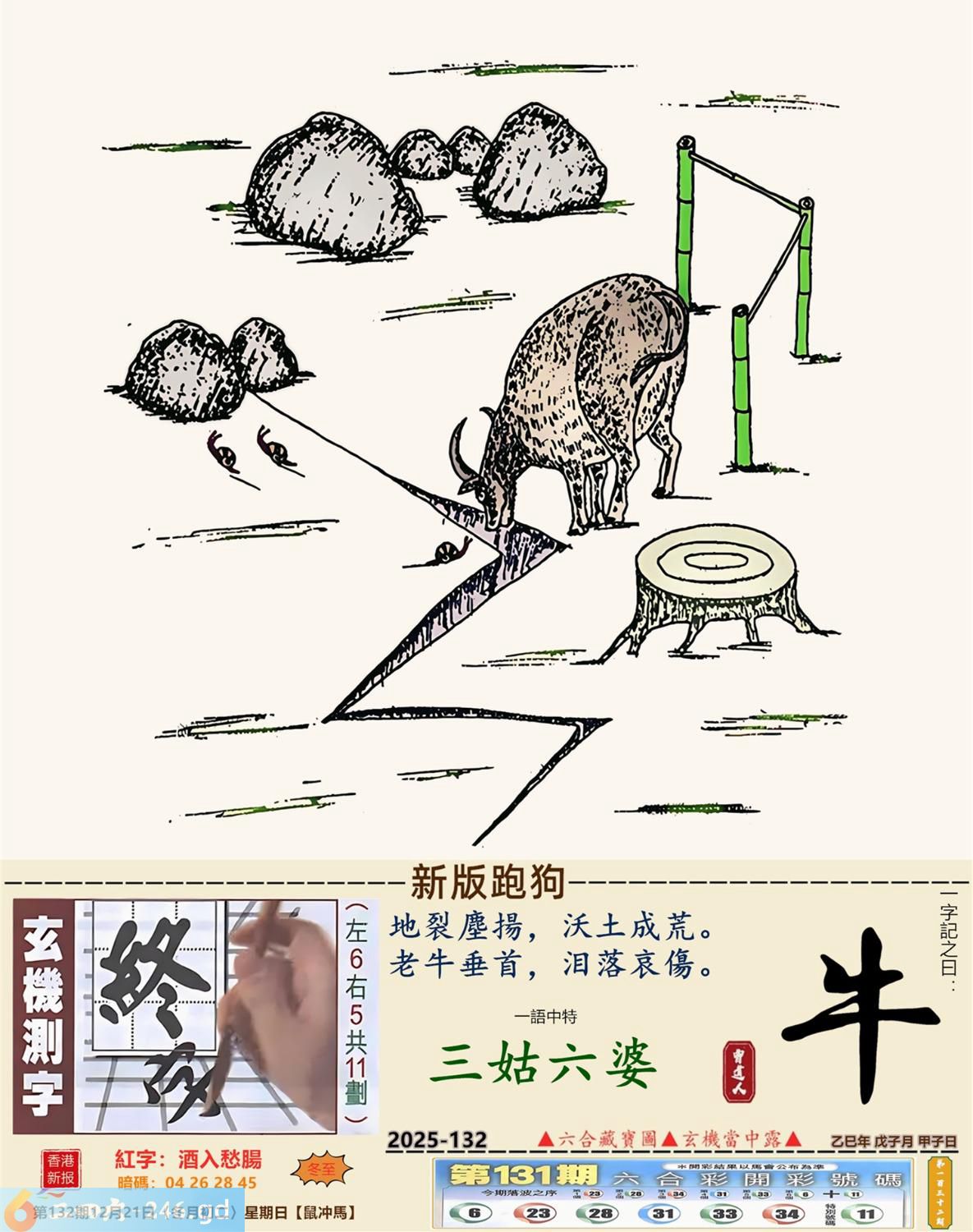 本帖最后由小歪于2025-12-2018:58编辑 2025年12月21日132期马(戊午)(海中金) 132期:老版跑狗玄機一字記之曰:【賜】 詩云:求天賜不講修為呢匀神仙都冇計 迷信成性,疑神疑鬼,拜山拜水拜烏龜; 只求天賜,不講修為,呢匀神仙都冇計。 玄機測字:《掛》 密圖詩:千金難買存光陰 《記》:不三不四是無賴 特碼大小單雙句:七上八下心惶惶 今期必中:馬超 132期:特碼歇后語 面具店失窃-----丢脸 132期正版四字梅花诗:步步为营。 132期火车头:烧伤马。诗:马死兔伤,三七出特今期来。 132期香港第一手欲钱料:惠州? 132期曾道人说:“大?” 132期另版四字梅花诗:大浪淘沙。 132期香港第一手欲钱料:欲钱看姜太公钓鱼。 132期曾道人说:“女人过年喜欢穿什么颜色的衣服”? 132期:二字經:不好 132期:天安门有特码 132期:智力金壤:炙手可热 132期:信箱紅字:【酒入愁腸】 132期:【暗碼:04-26-28-45】 132期:一語中特:【三姑六婆】 發財玄機圖:鳴聲響亮冠頂鮮紅圖中明雞藍綠 132期:藏寳圖 新:金缕香消春不管 老:留住玖华云壹片 禁:鼠禁:4尾玄機字《自》 2025年132期【生活幽默】版 〖禮貌地説〗 老師問:你約了心儀的女孩子吃晚餐,當你要上厕所時,該怎禮貌地? 同學:我去撇個尿!老師:這一點都不禮貌。 同學:我去上個厕所,等等回來。 老師:嗯,這個不錯,但還有更禮貌的。同學:容我離開一下。我去跟一個好朋友見個面。如果可以的話,我更希望今天晚上有機會介紹他給你認識。