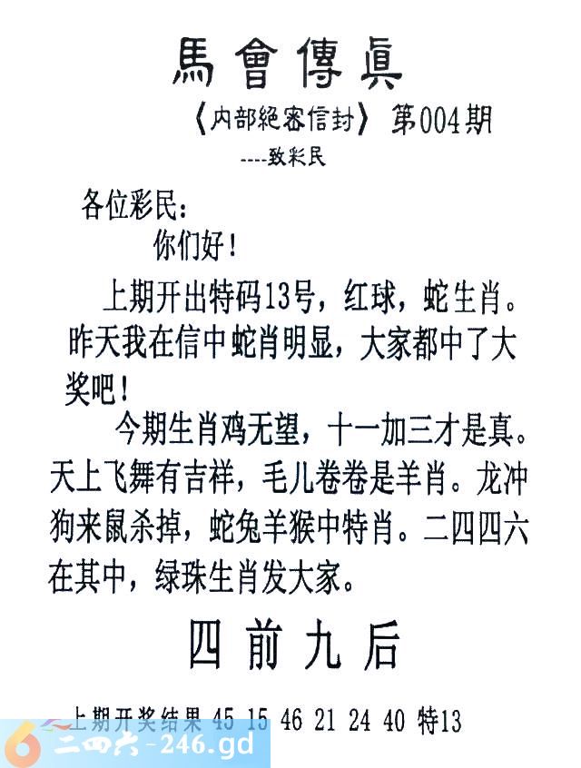 004期:首发推荐:≮馬會傳眞≯→(香港正版)