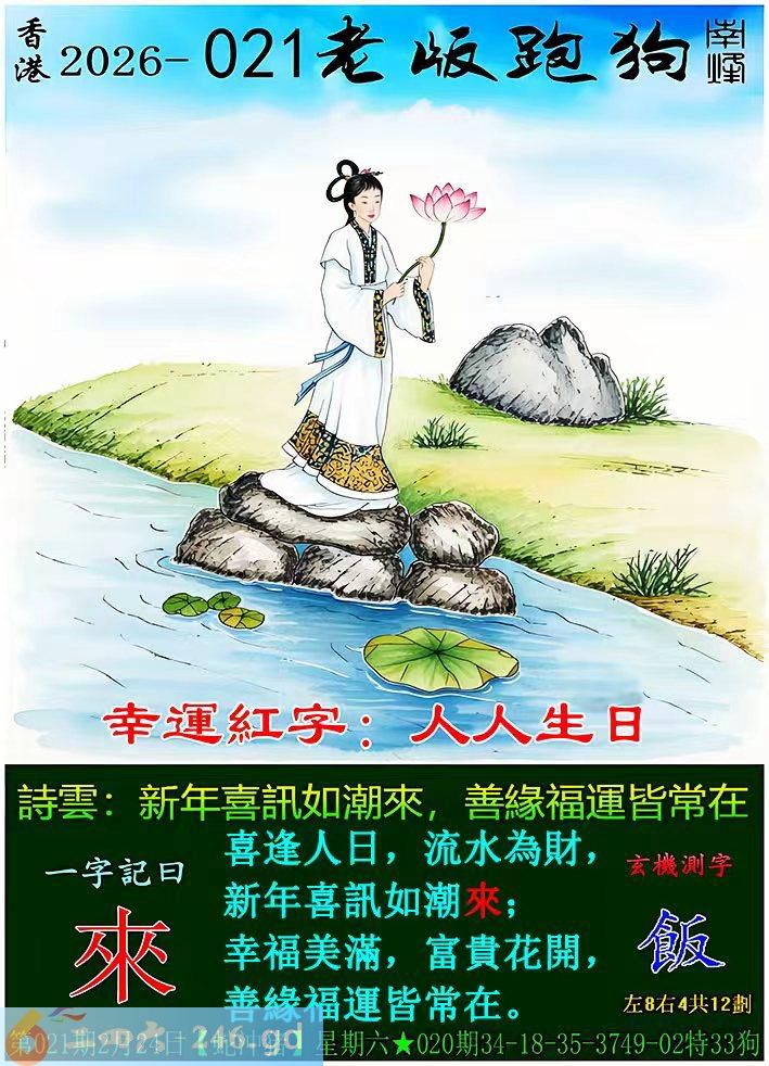 本帖最后由山丘于2026-2-2417:05编辑 021期老版跑狗一字記之曰:【來】 詩雲:新年喜訊如潮來,善緣福運佳皆常在。 喜逢人日,流水為財,新年喜訊如潮來; 幸福美滿,富貴花開,善緣福運皆常在。 就这期的老狗诗句,开个吉美生肖不过分吧?