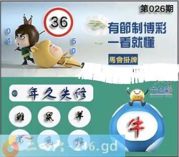 2026年026期正版彩图挂:36 爆:牛 挂牌成语:年久失修 挂牌出肖:鸡鼠羊虎兔猴
